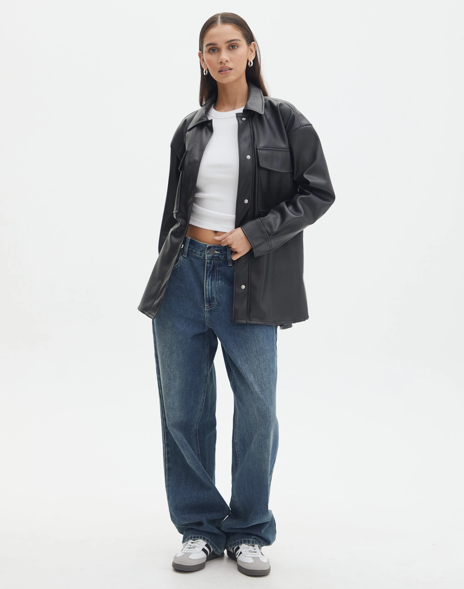 Double Pocket Oversized Faux Leather Shacket