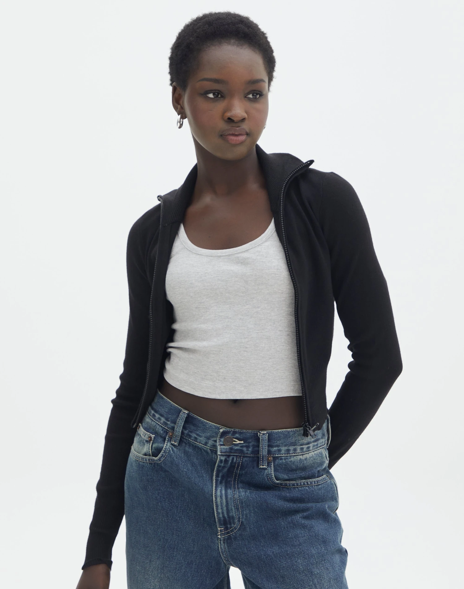 Long Sleeve Zip Through Knit Top