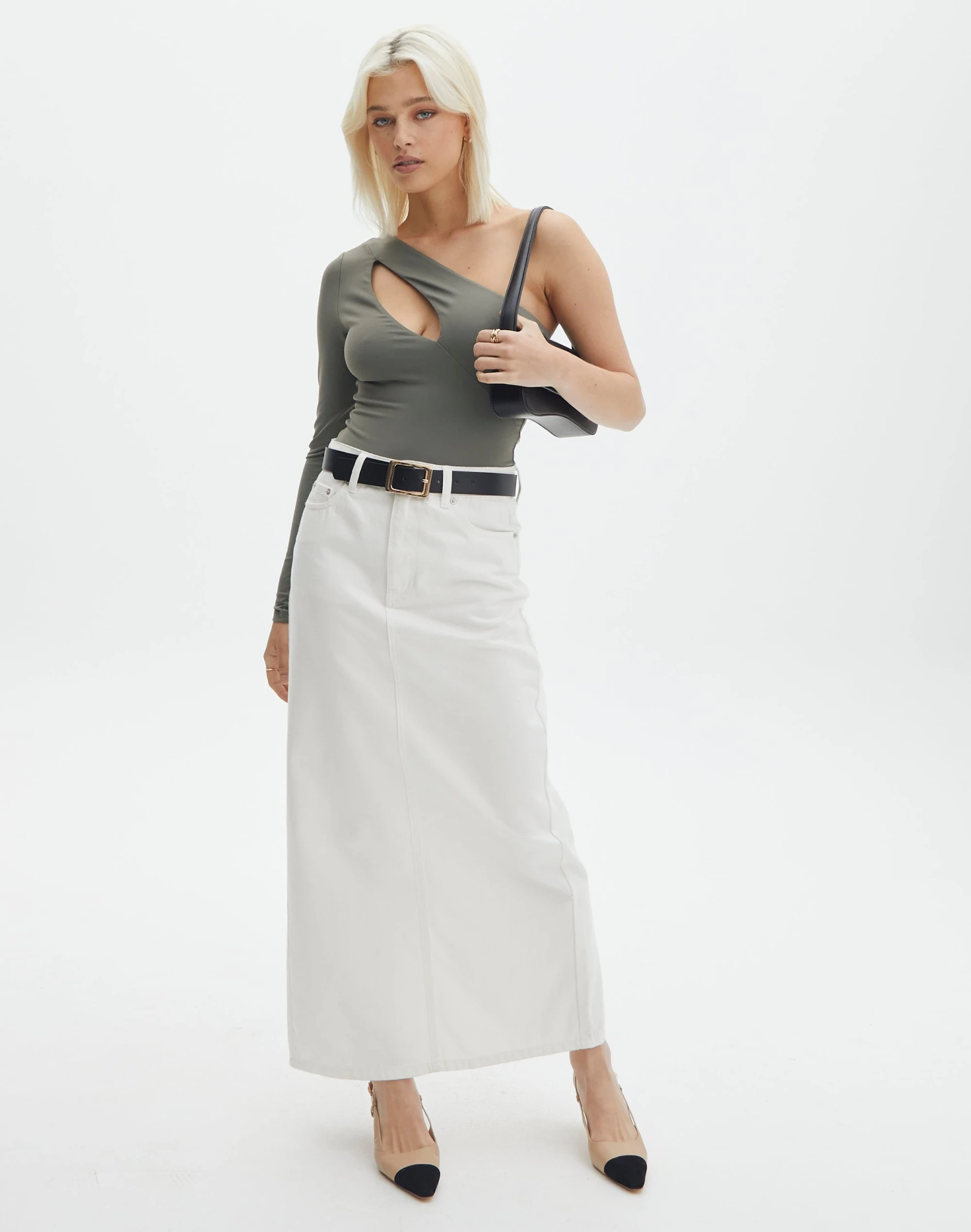 Supersoft One Shoulder Long Sleeve Cut Out Bodysuit