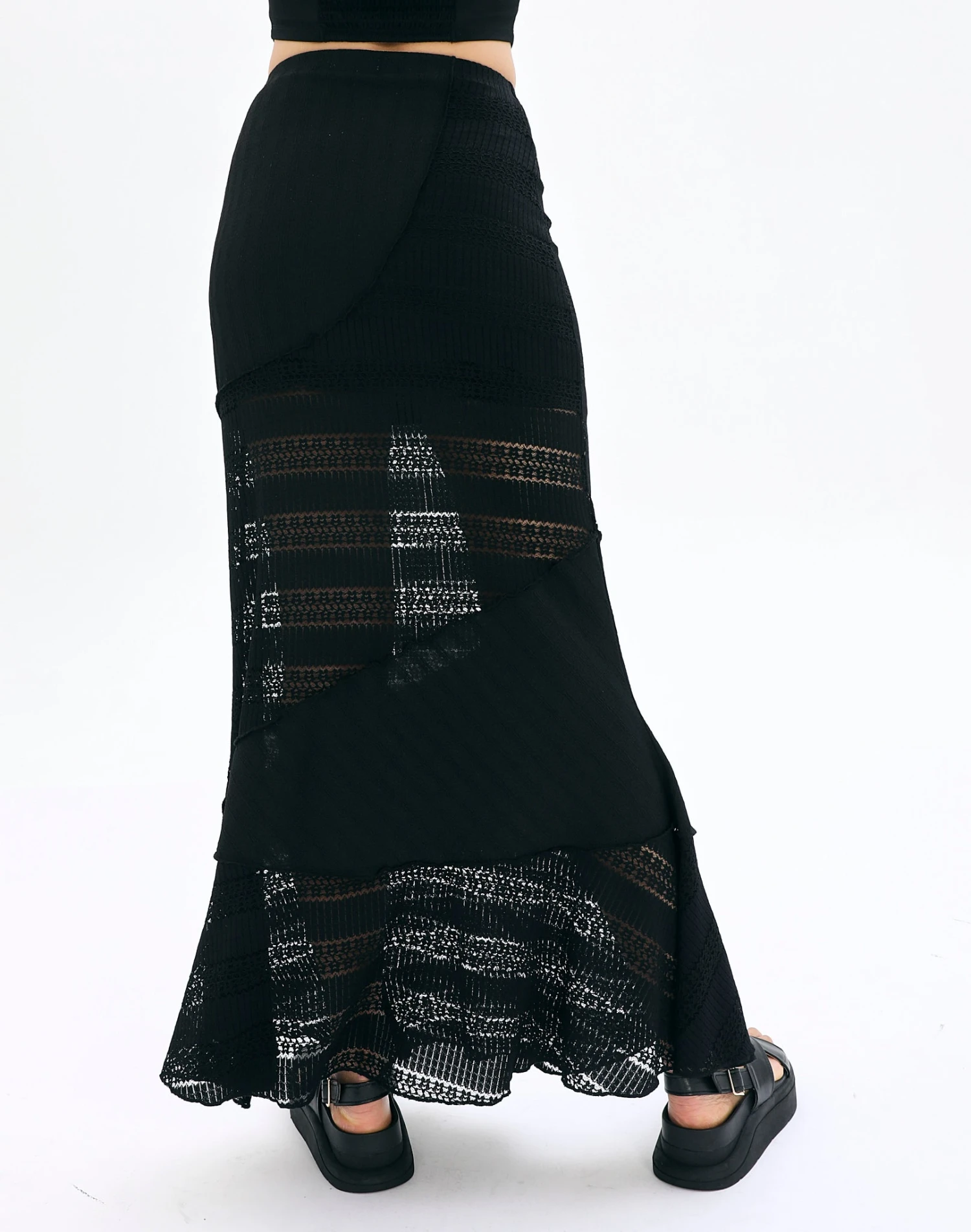Textured Asymmetrical Panel Maxi Skirt