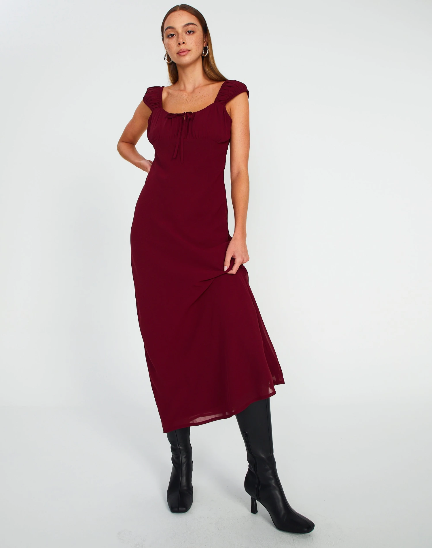 Be the first to review “Tie Front Puff Sleeve Maxi Dress” Cancel reply